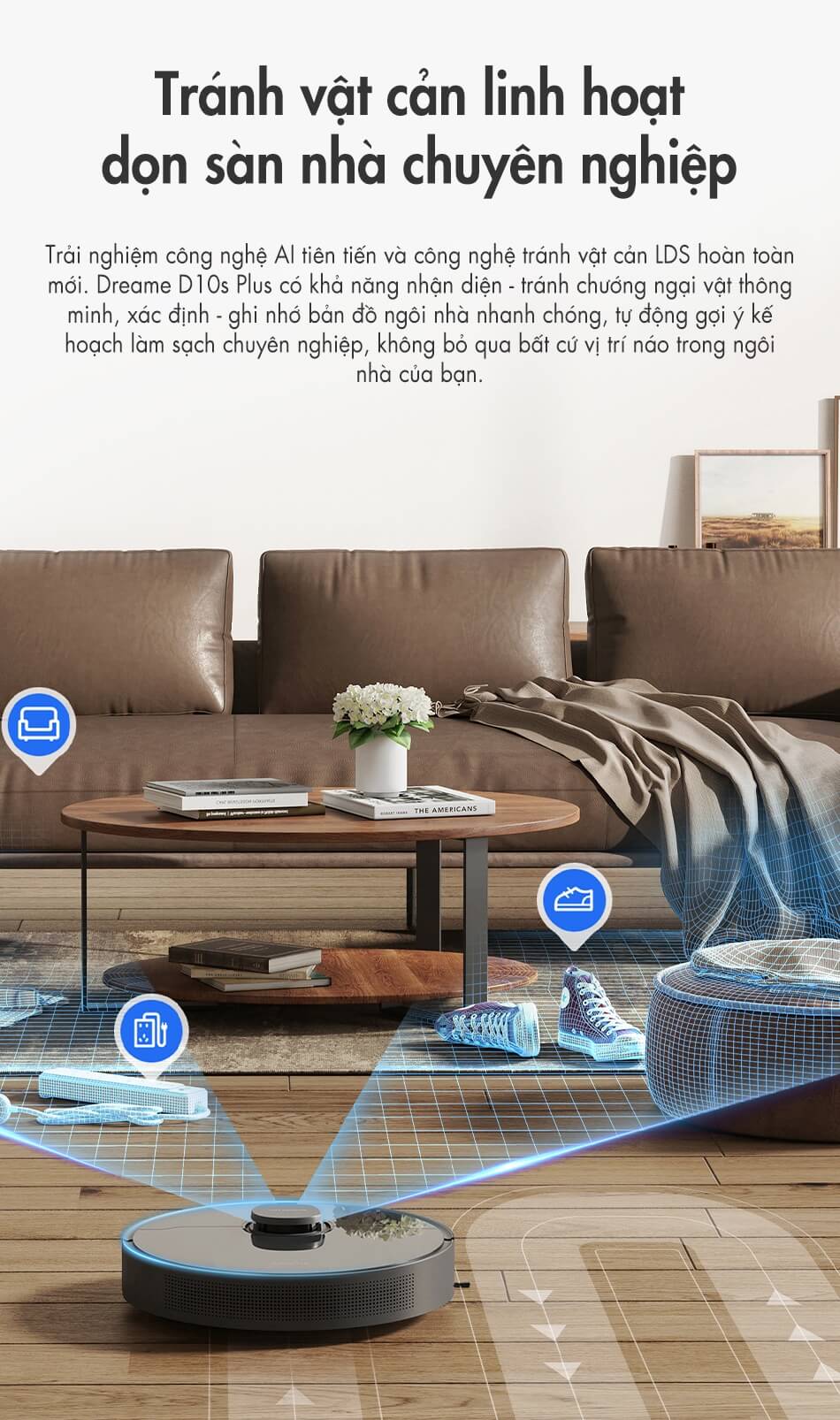 Dreame D10S Plus vẫn được sử dụng công nghệ định vị điều hướng bằng. Hệ thống này cho phép robot quét nhanh sơ đồ nhà chỉ vài phút, từ đó giúp D10S Plus hoạt động một cách hiệu quả và chính xác.