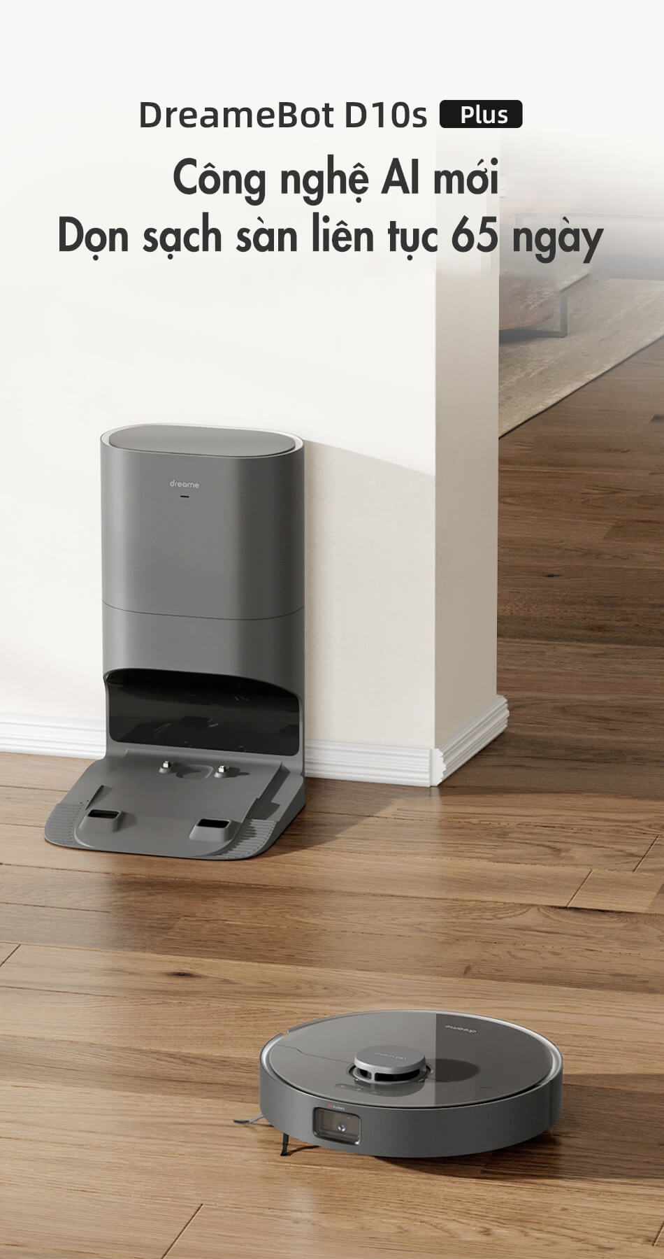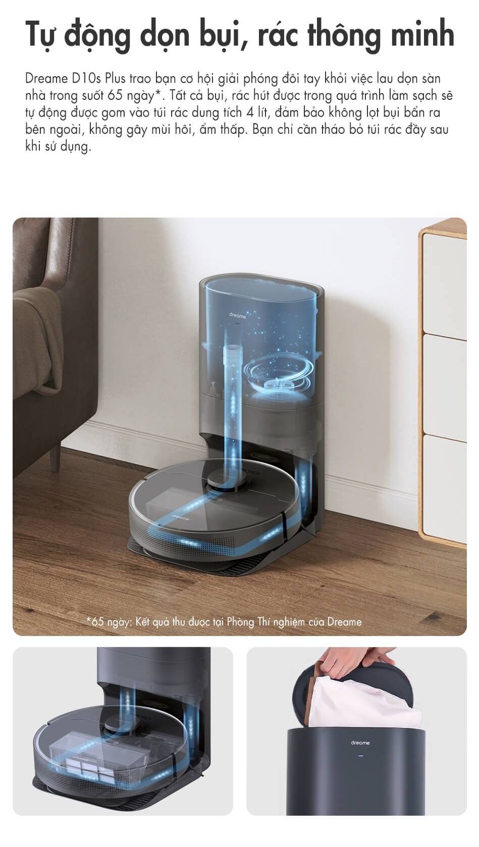 Dreame D10S Plus có khoang chứa bụi lên đến 4L giúp người dùng có thể sử dụng lên đến 60 ngày, tiết kiệm được thời gian cũng như hạn chế tiếp xúc bụi bẩn gây ảnh hưởng đến sức khỏe.