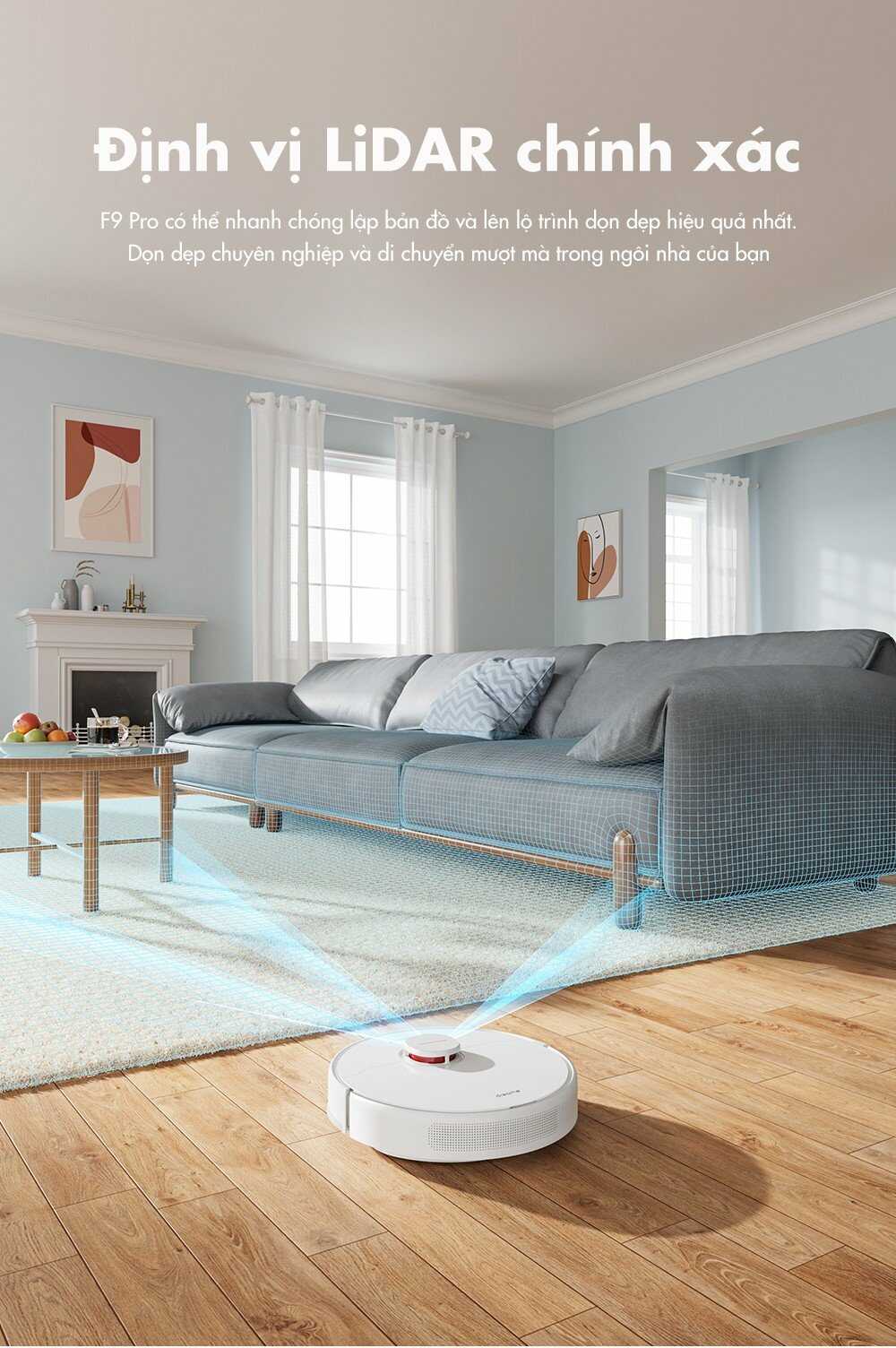 Robot hút bụi lau nhà Dreame F9 Pro được trang bị bộ định vị LiDAR giúp xác định chính xác vị trí robot và sơ đồ nhà một cách chính xác. Từ đó tối ưu quãng đường di chuyển hợp lí hơn.
