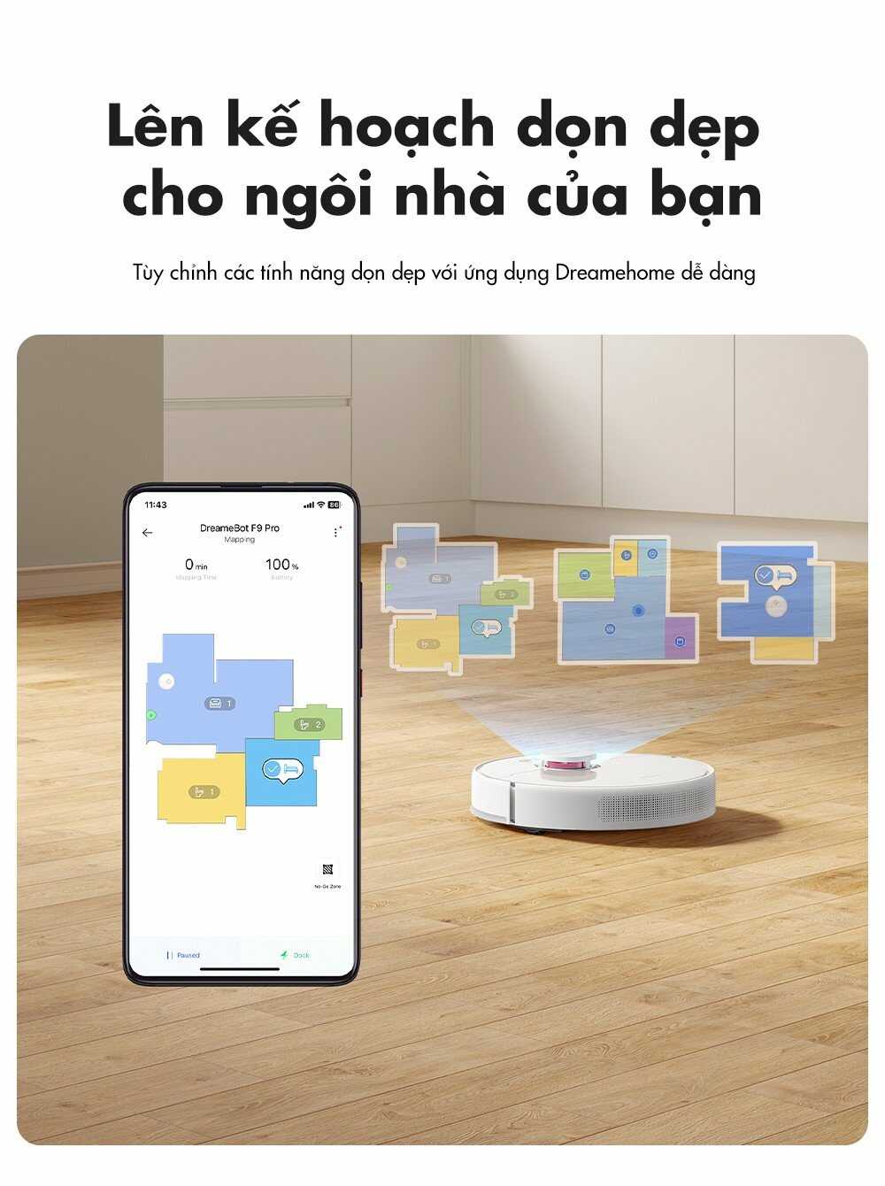 Chỉ với vài thao tác đơn giản, bạn có thể kết nối robot với app trên điện thoại. Thông qua app này giúp người dùng có thể cài đặt một số tính năng cơ bản hoặc nâng cao, dễ dàng quản lý sơ đồ một cách trực quan. Đồng thời, người dùng có thể điều khiển robot khi bạn đi công tác, du lịch…