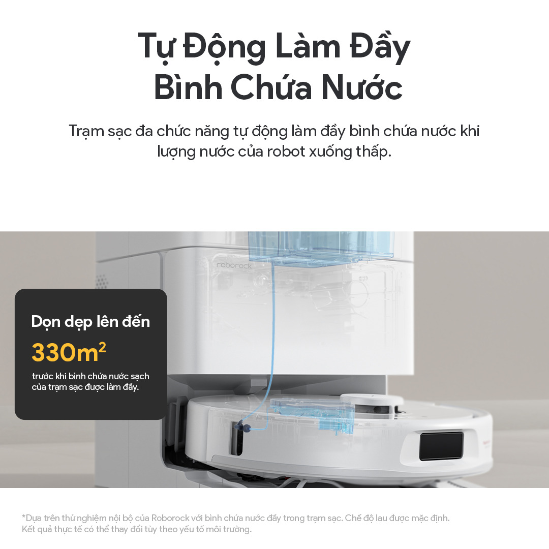 Ngoài ra, tính năng tự động bơm nước sạch vào hộp chứa nước của robot Roborock Q Revo S cũng là một điểm cộng lớn, giúp đảm bảo robot luôn có đủ nước cần thiết cho quá trình làm sạch.