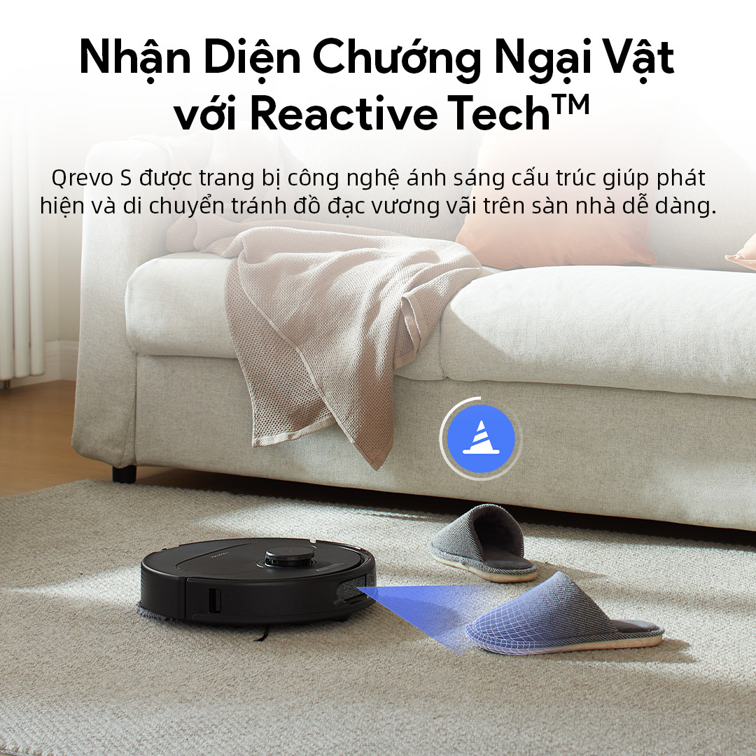 Hơn nữa, công nghệ Reactive còn giúp robot phản ứng nhanh chóng khi gặp phải các chướng ngại vật, điều chỉnh quỹ đạo di chuyển để tránh va chạm và mắc kẹt. Điều này đảm bảo rằng Q Revo S có thể duy trì hiệu suất làm việc liên tục và hiệu quả mà không gặp trở ngại.